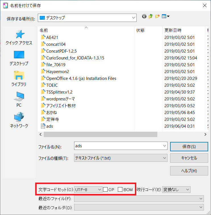 ads.txtファイルを保存する(サクラエディタの場合)