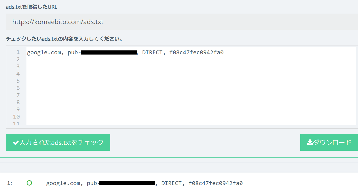 これで、無事ads.txtを反映されていることが確認できます。