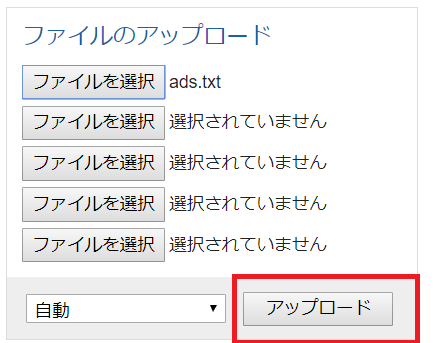 右側にある「ファイルのアップロード」を選択する