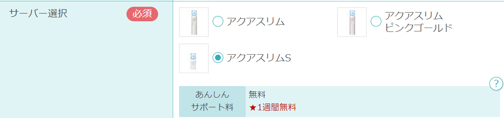 | ・ウォーターサーバー1000円 ・ボトルウォーター2100円 |