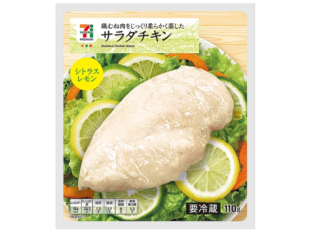 198円(税込213円)シトラスレモン味のサラダチキンです。鶏ムネ肉をレモンで味付けてジューシーに蒸し上げました。さっぱりとした味わいです。