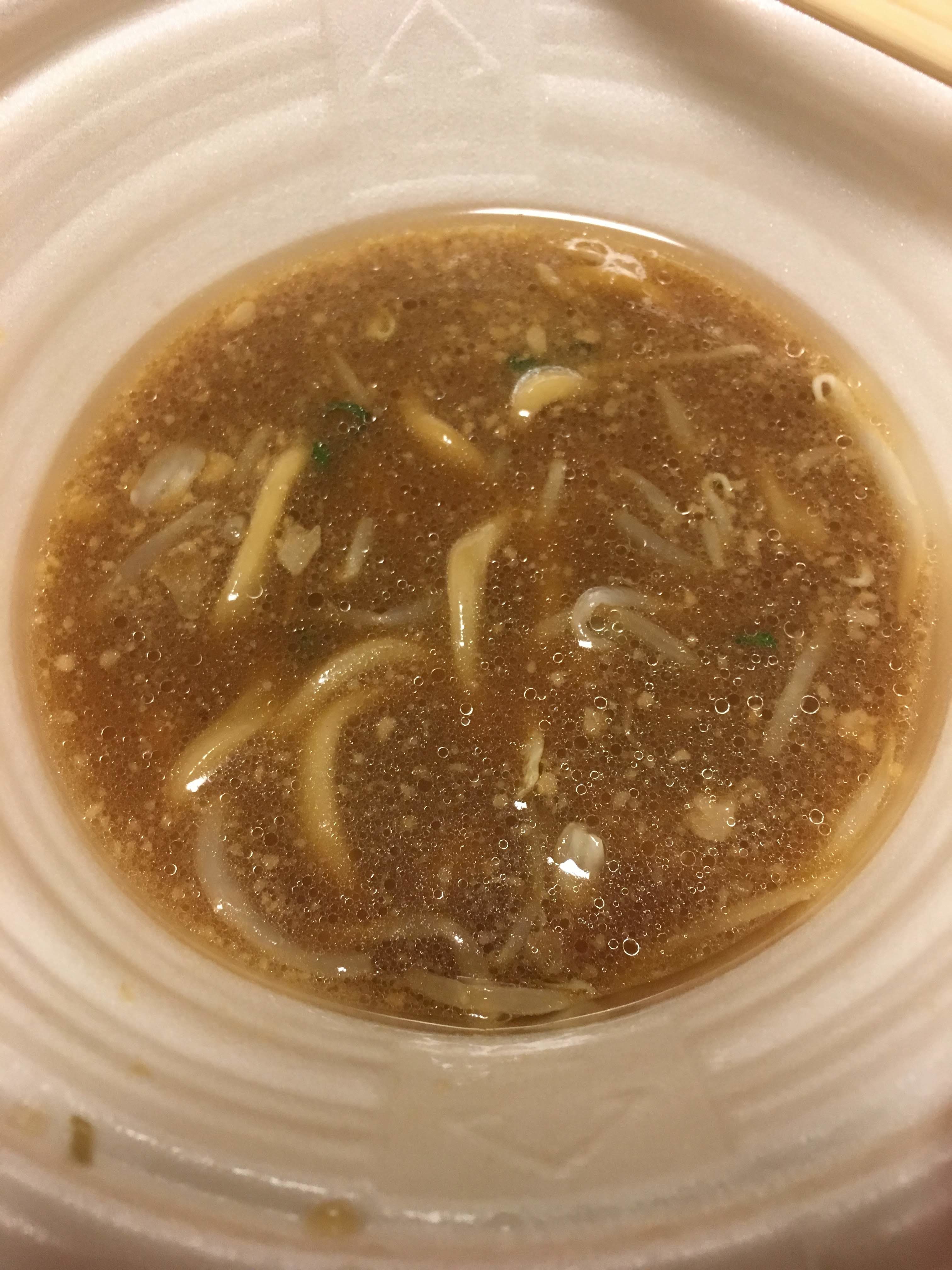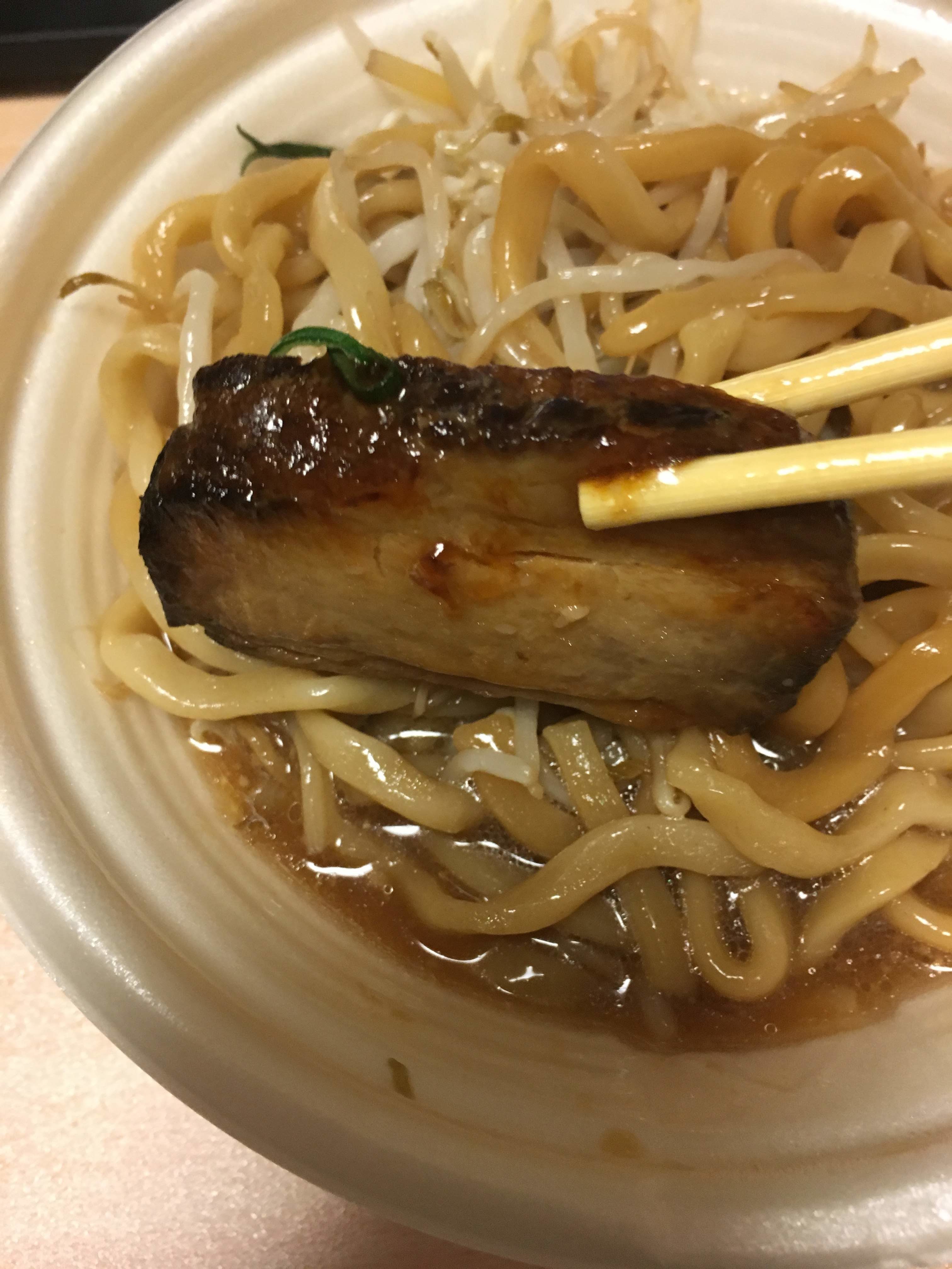 そもそもチャーシューがドライチャーシューではなくいわゆる調理されたチャーシューですので、この部分も高ポイントです。なんとなく乾燥干し肉をお湯で戻して食べているような感想が抜けきらないカップ麺とは全く違う体験といってよいでしょう。本当にガッツリと肉を食らっているというイメージでした。