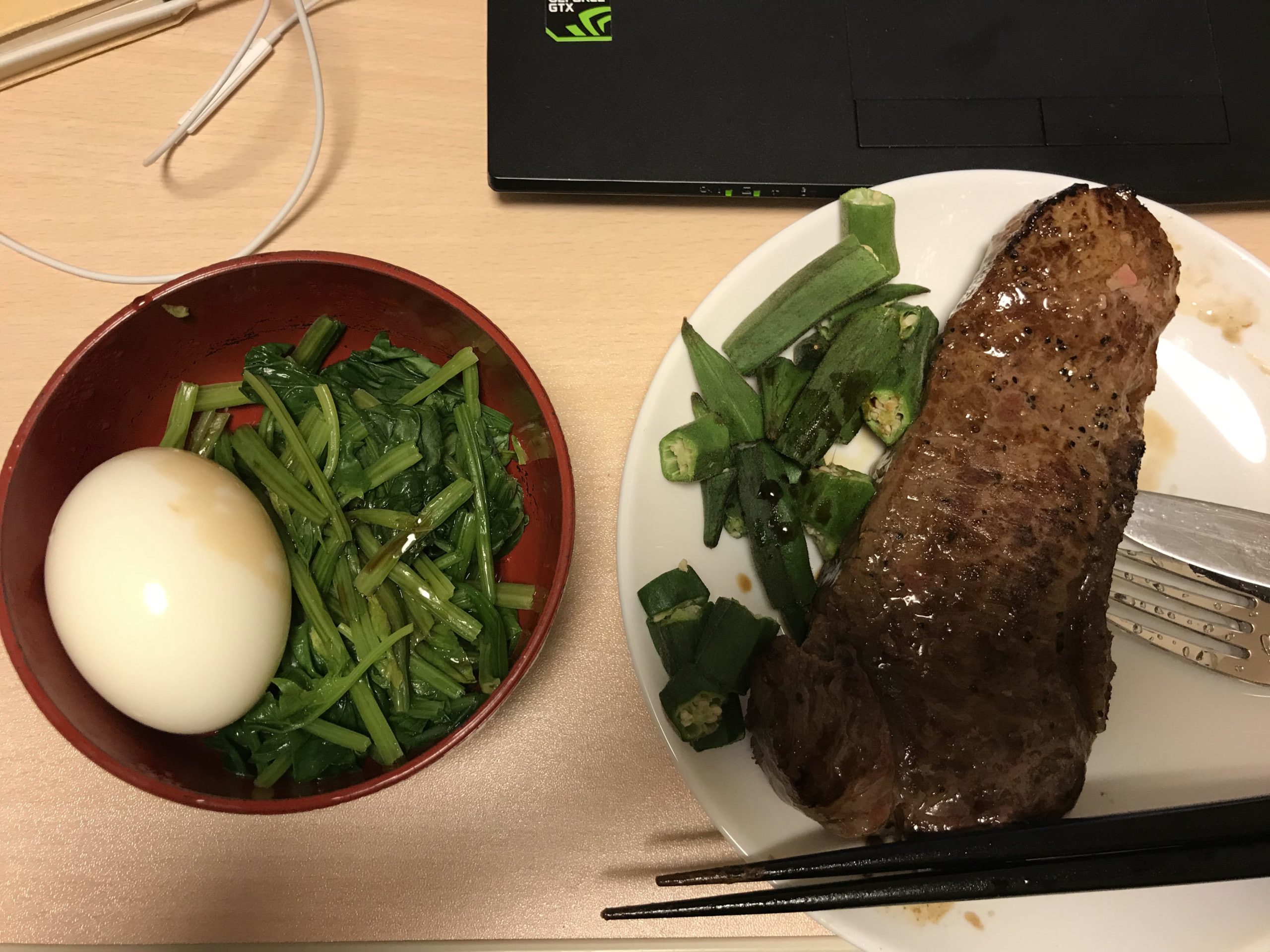 そして久しぶりのステーキ!合わせるのはなぜかオクラですが、意外に合いますよ。