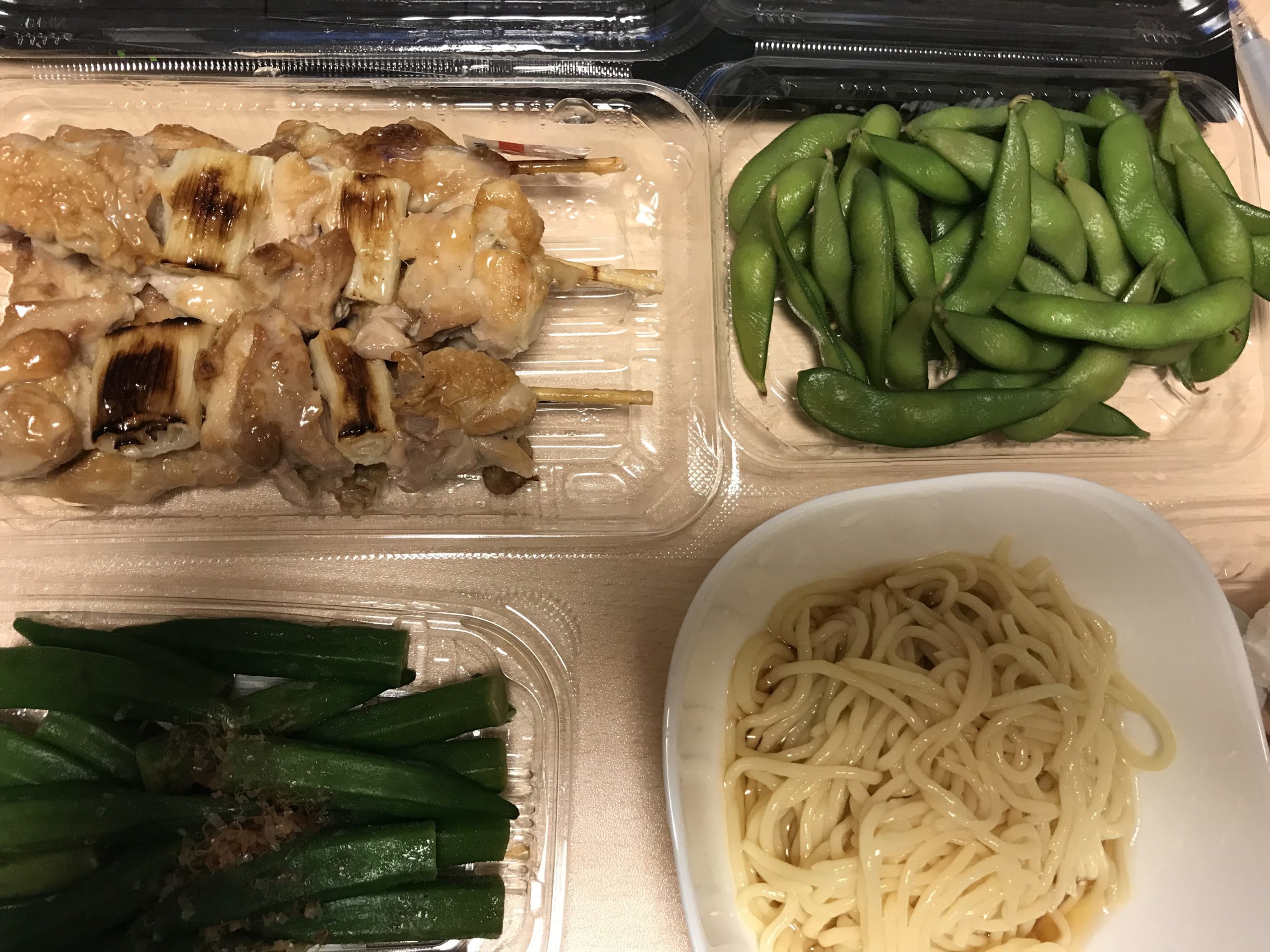糖質ゼロアルコールを追加しています(笑)スーパーの総菜でも、これらのメニューなら比較的OKではないでしょうか。焼き鳥はたれではなく塩を選び、緑色の野菜を選ぶといい感じになります。