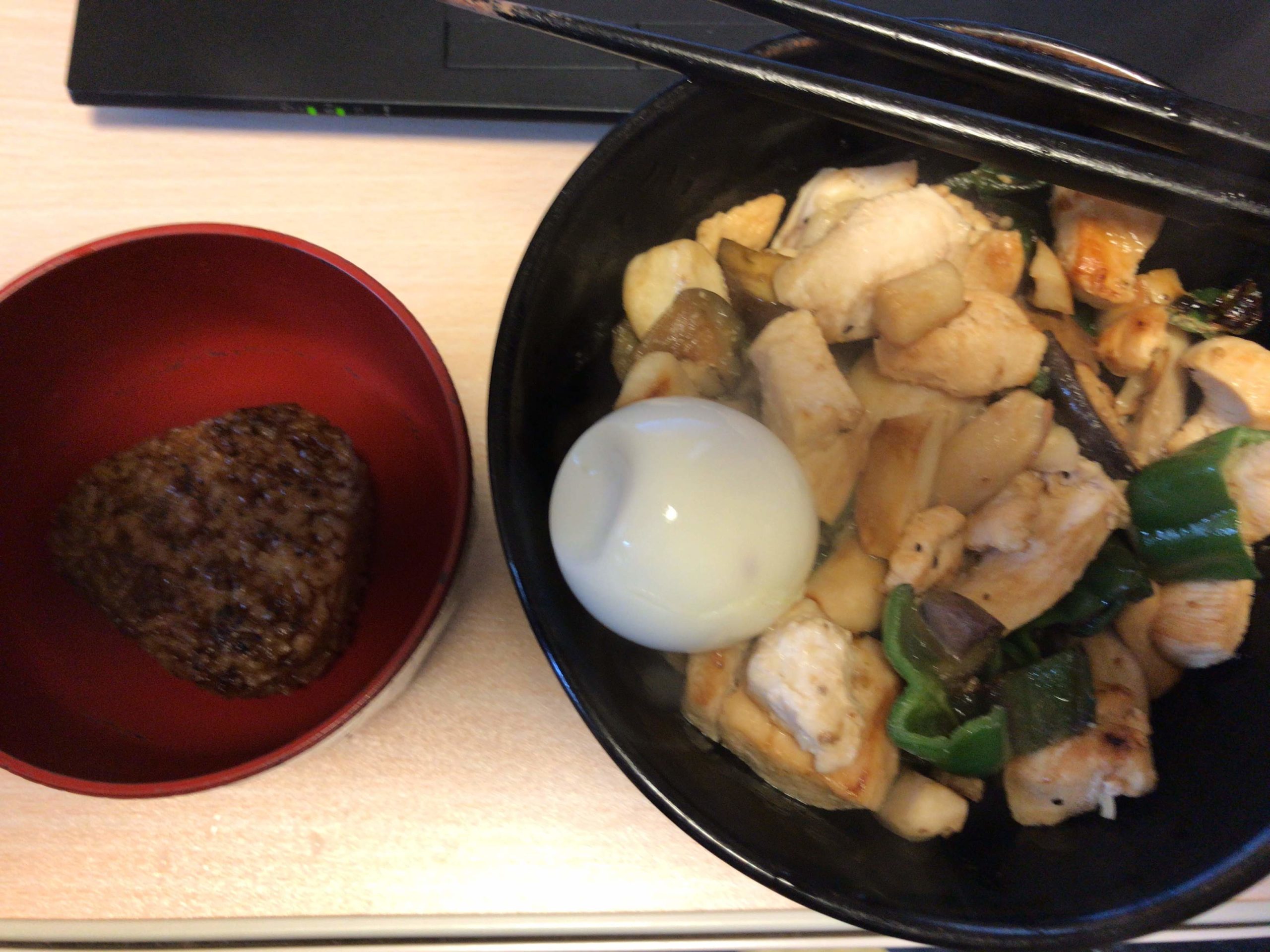 ボリュームといいバランスといい、いい感じではないのかなと。玄米おにぎりが売り切れのため食べれなかったため、昼に取るようにしています。1日1食はご飯を食べるようにしていきます。