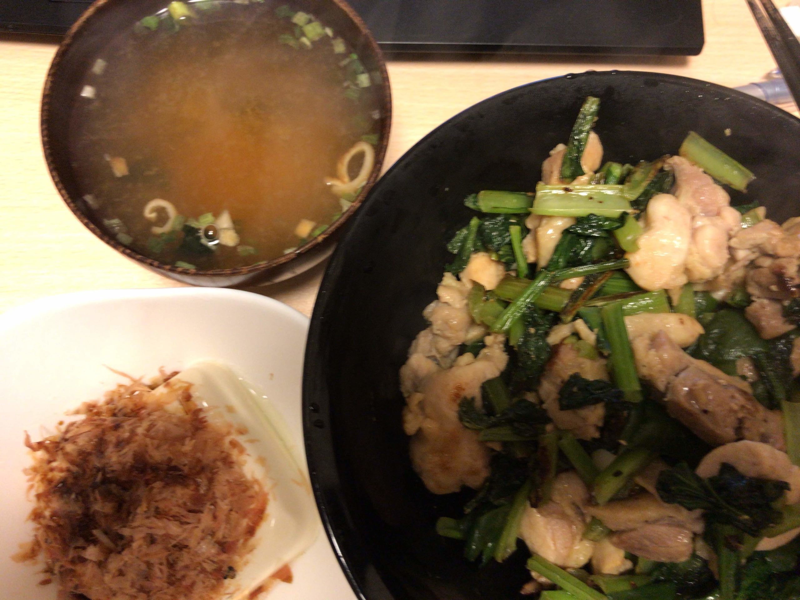 夜は緑野菜を大目に摂取しました。相変わらず炒め物が楽なので、肉などと一緒に炒めていますが、アスパラとほうれん草の相性はばっちりですね!