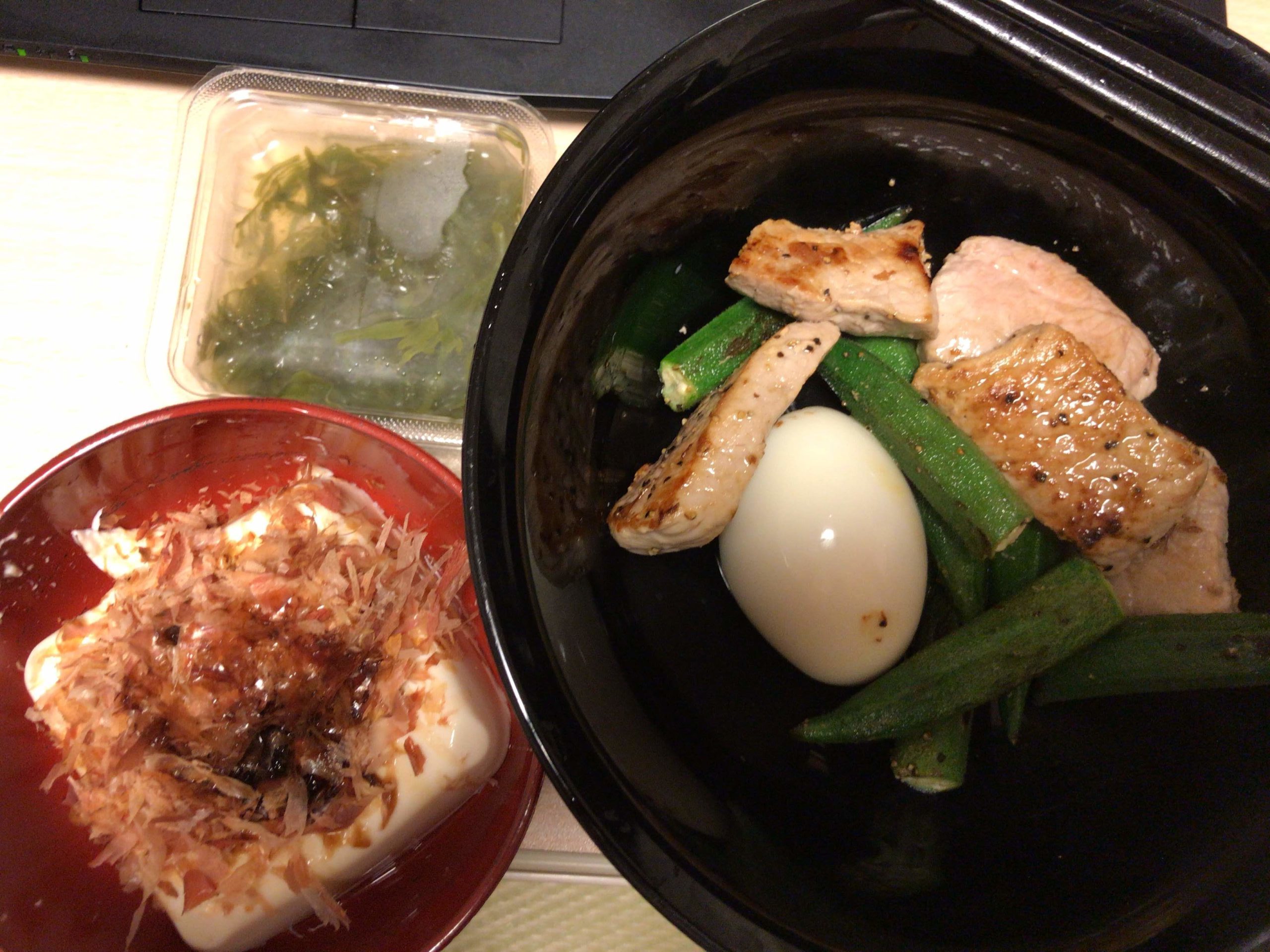 わりと糖質オフメニューが選べたんじゃないかなと自負していますが、きんぴらごぼうの甘みの糖質が少し気になるところでしょうか。スーパーの総菜だけでも選び方を気を付ければ糖質オフメニューは作れますね。