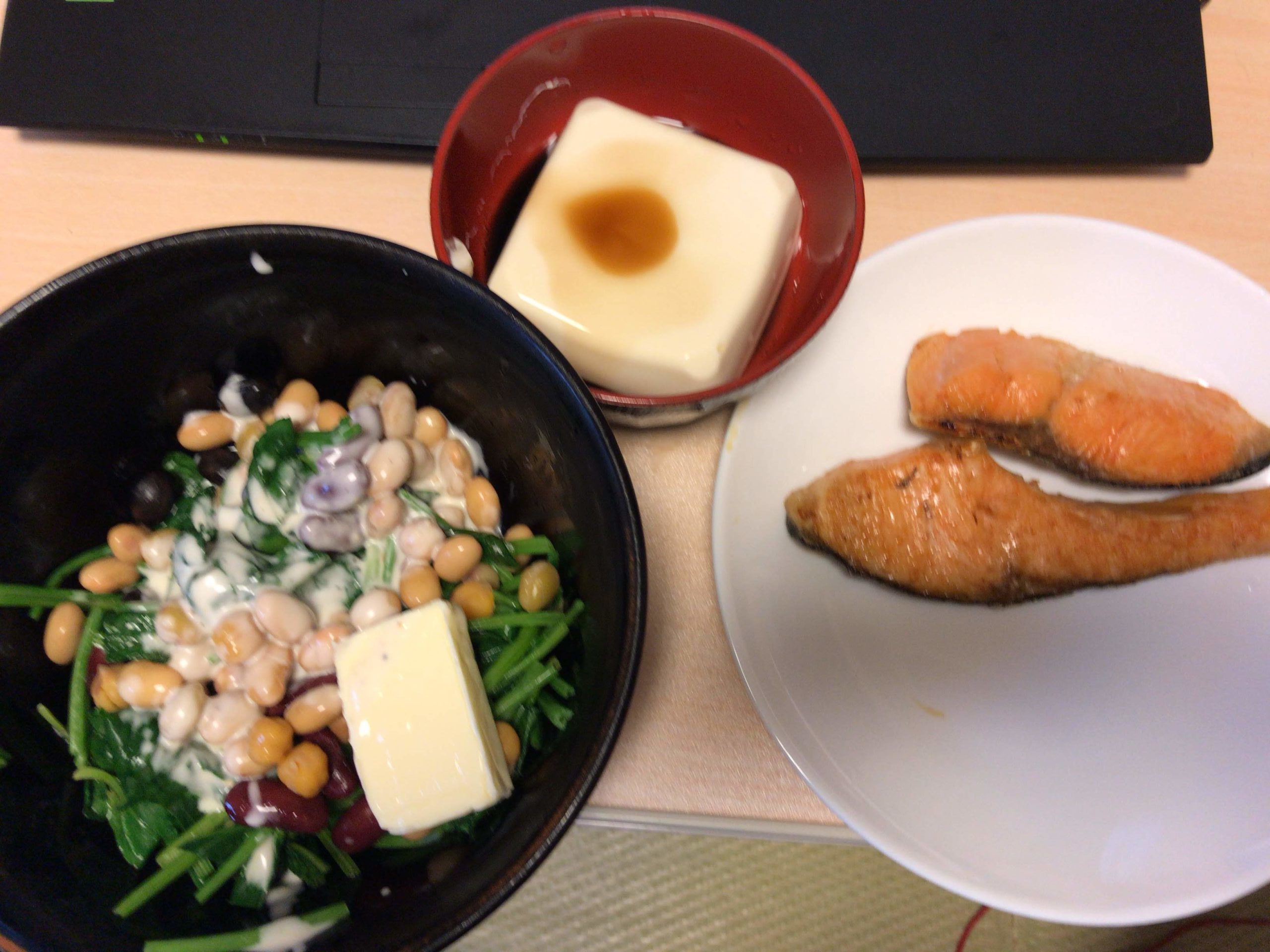 豆の単品だけ混ぜてもおいしいですね。ドレッシングはシーザードレッシングだったので、あっさりの和風ドレッシングにした方が良かったかもしれません。ほうれん草とシーザードレッシングも結構合います。