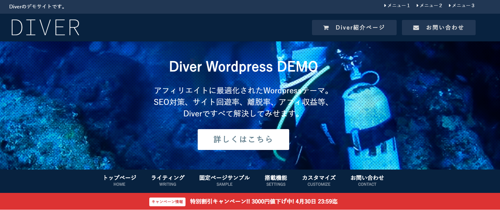 そのため初心者でもサポートチームに聞きながら作業することができますし、DIVER公式ページはかなり充実しており機能の説明が画面とともに細かくされていますので、安心して導入できるテーマと言えます。