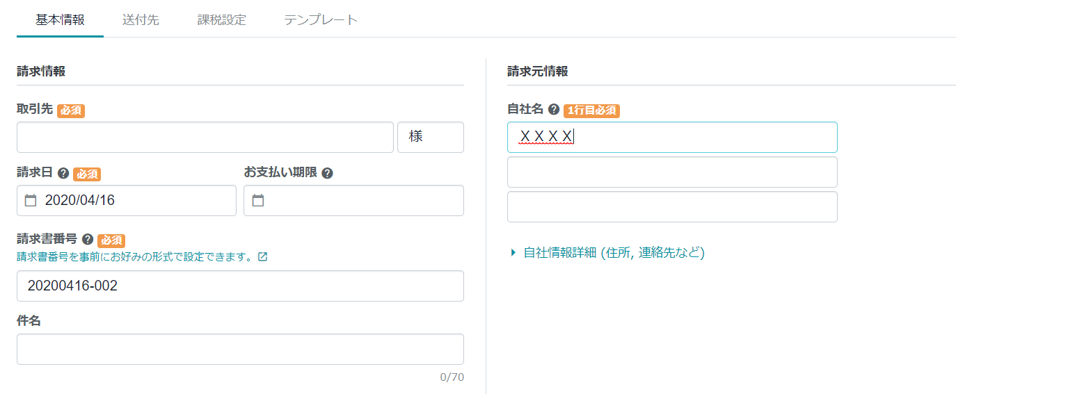 請求情報と請求元情報を入力する