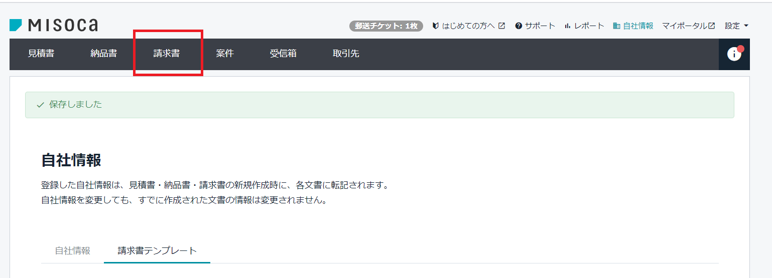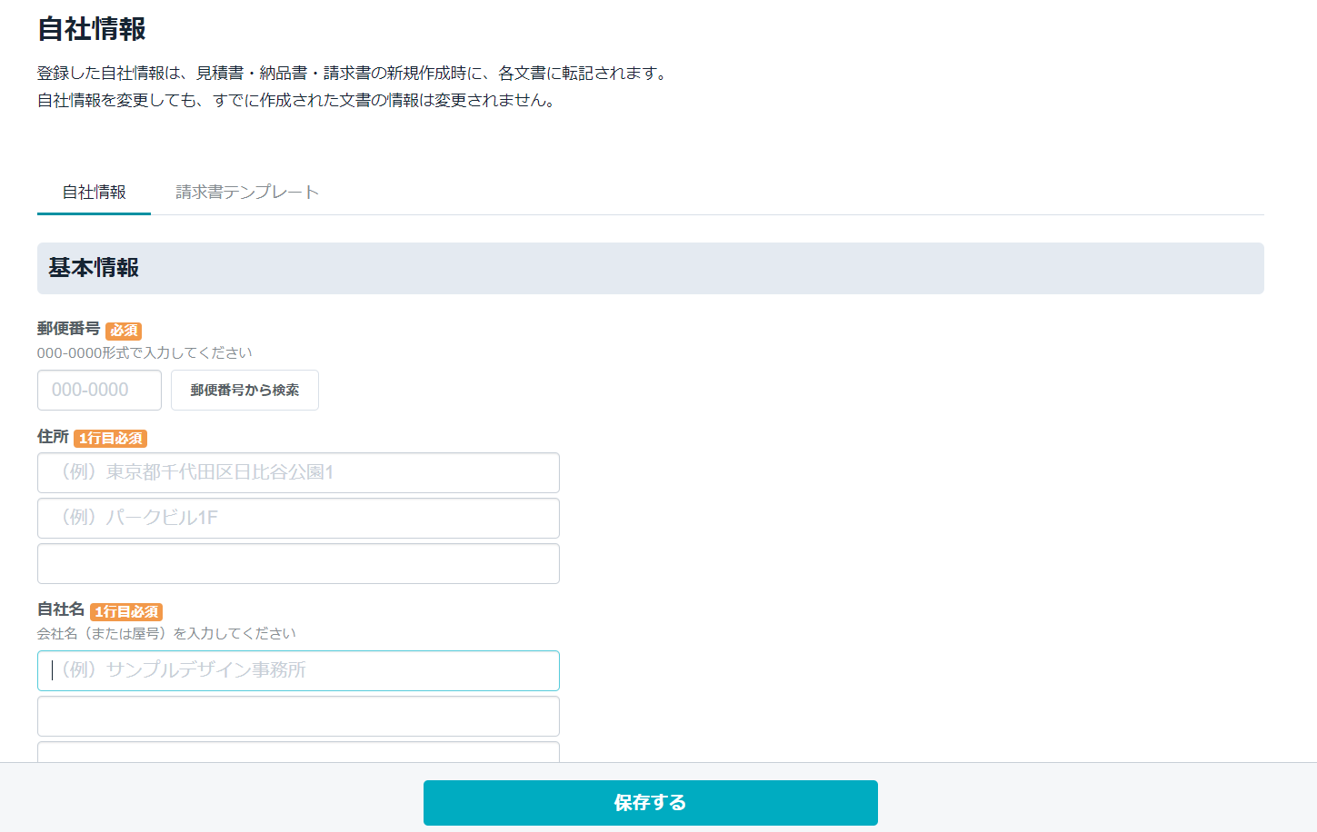 自社情報を入力し「保存」を選択