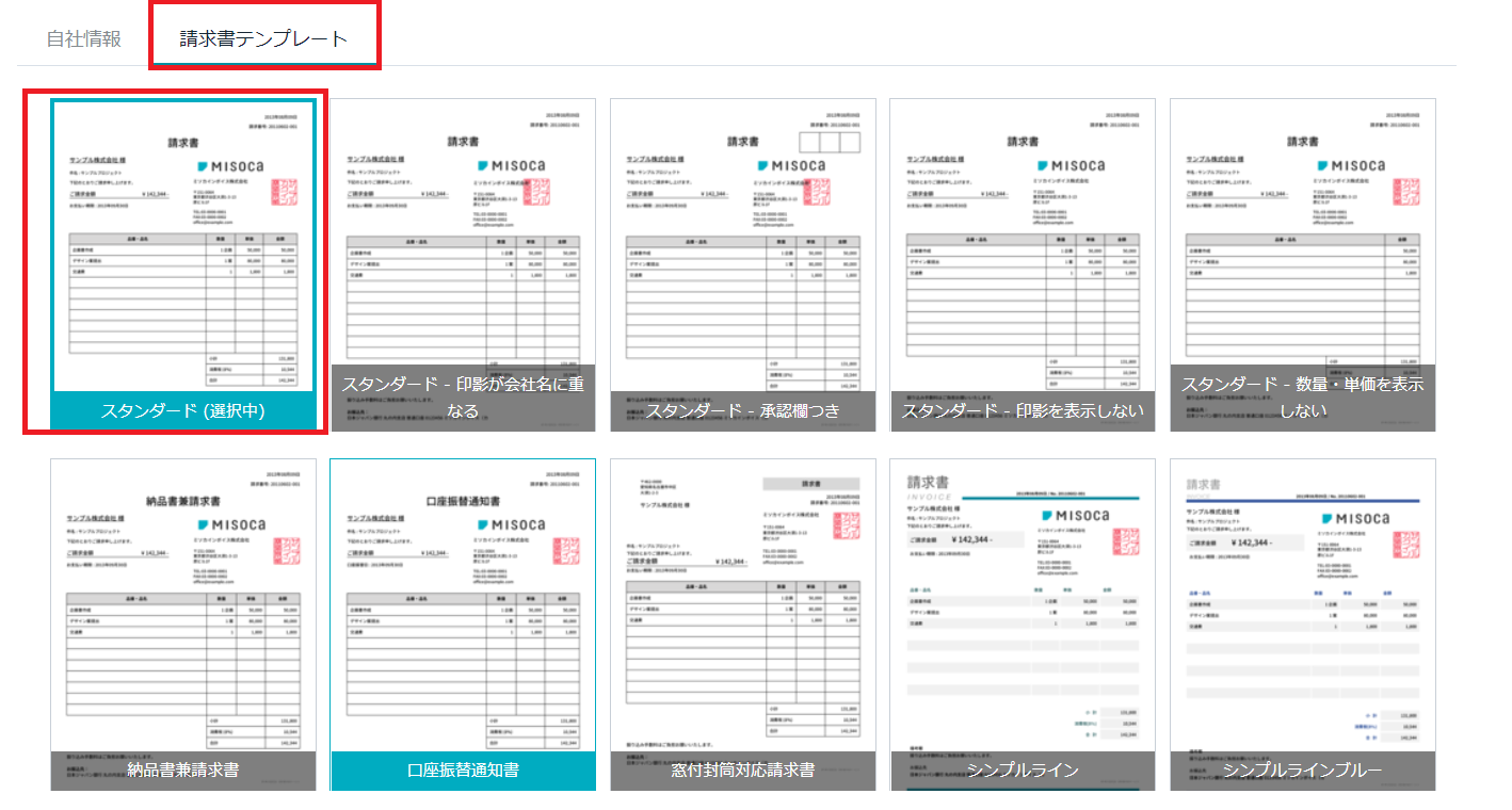 請求書テンプレートを選択し保存