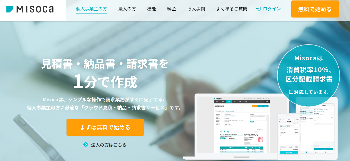 Misocaとはクラウド上で見積書・納品書・請求書を簡単に作成することができるサービスです。