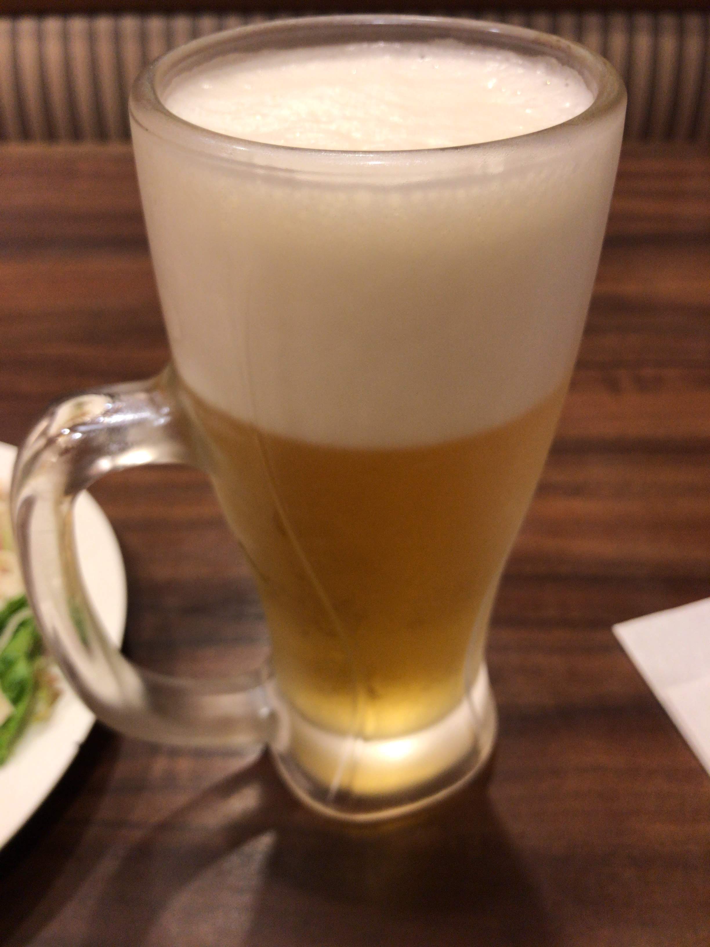 やはり生ビールからですね。料金は499円(税抜)なので、チェーン店のちょい飲みとしてはやや高めの印象ですね。もう100円ぐらい安くしてくれると嬉しいかも。