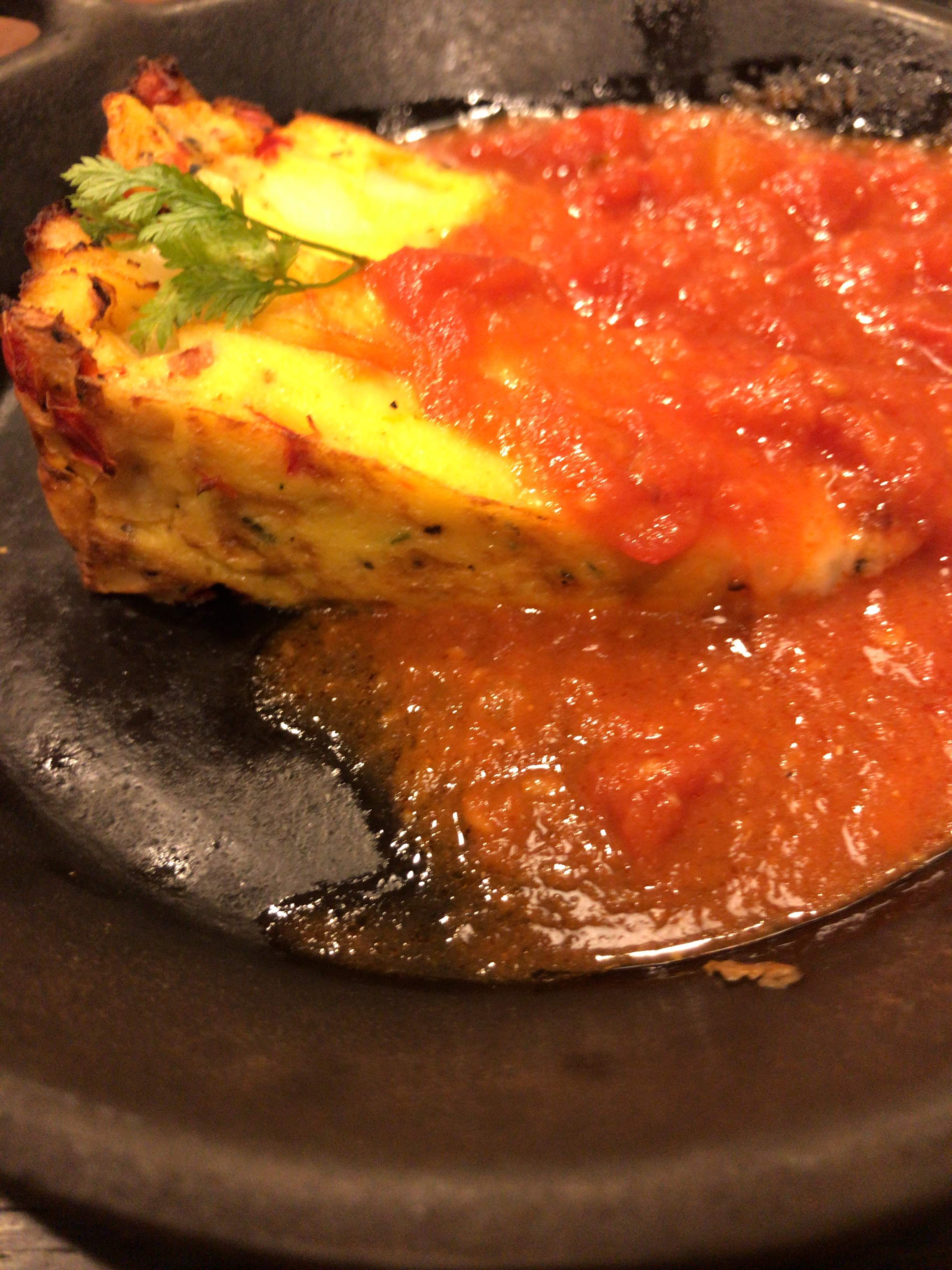 このメニューのキーマンは、濃厚な酸味のトマトソースですね!ボリュームも結構あるので、フライドポテトなどをつけてもおいしそうです。いくらでも酒が飲めそうな感があります。(笑)