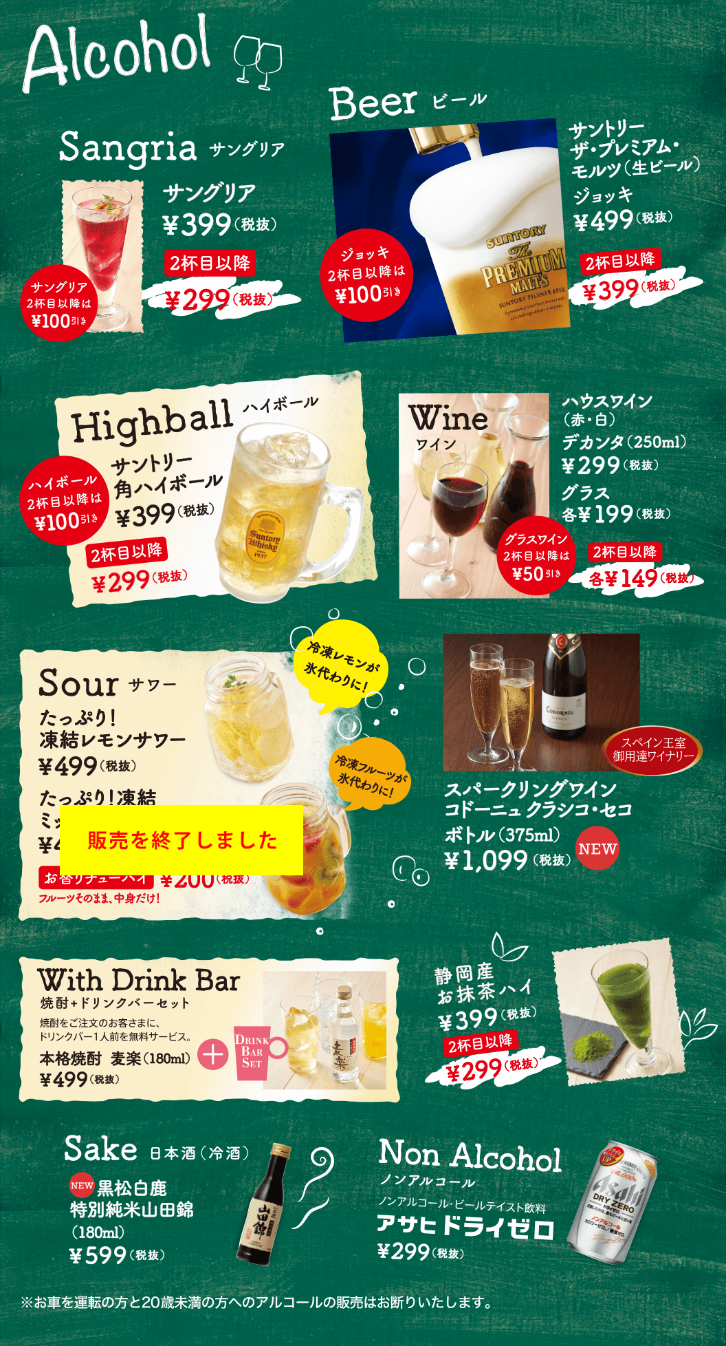 ただ、ジョナバルでは同じドリンクを2杯以上頼むと、2杯目が100円引きになるというサービスがあります。2杯以上飲むのなら同じメニューにしたほうがお得かもしれません。