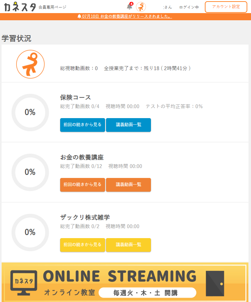 カネスタはオンラインコンテンツが豊富なので、好きな時間に学ぶことができます。