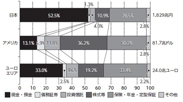 出典:日本銀行調査統計局「資金循環の日米欧比較(2018年)」を基に作成
