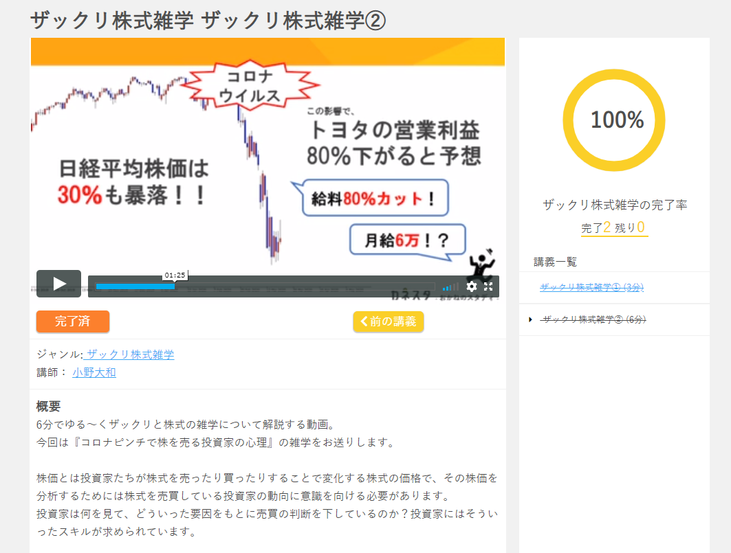 | 【動画概要】 様々な金融商品の中から、最適なものを最適なタイミングで選び、資産形成していくのは非常に困難です。カネスタでは 各分野のプロフェッショナルが講師となり、今の時代に必要不可欠な、お金の正しい知識を提供します・貯蓄 ・資産運用 ・家計簿 ・つみたてNISAなど煩雑だった「お金」の学習を1つのプラットフォームに集約します。お客様のライフスタイルに合わせて、中立的なファイナンシャルプランナーと相談しながら学習プランをオーダーメイドで設計し、自分に合った学習プランを設計することで安心して必要な知識を自分のペースで学習ることができます。お金の知識を身に付け、1つの上の自分を目指そう。 |