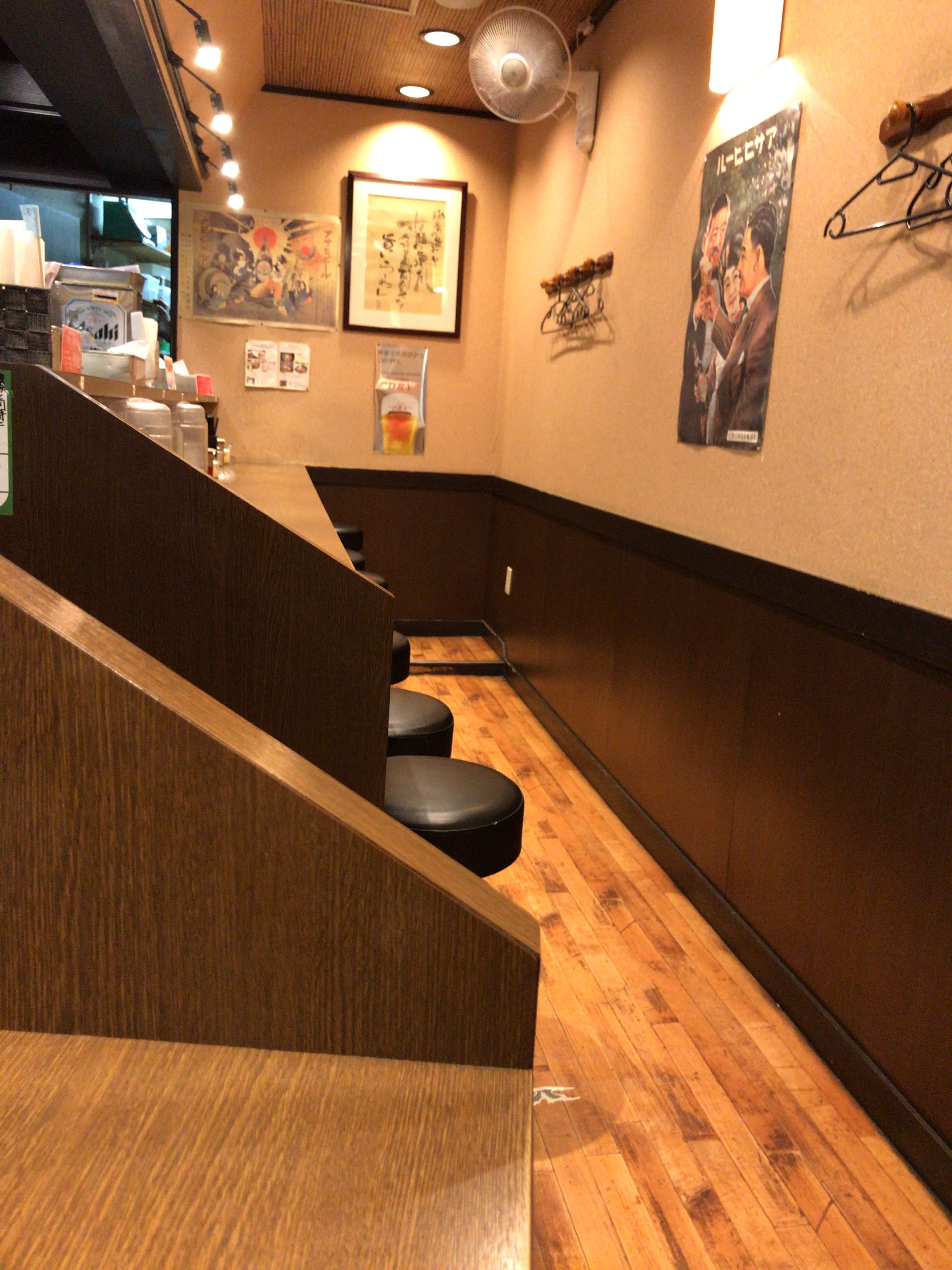カウンター席のみとなっています。入ったのは午後11時ごろでしたが、自分以外のお客さんが一人もいないことに若干不安を覚えますが(汗)。お店は、ご夫婦で営業されているようです。