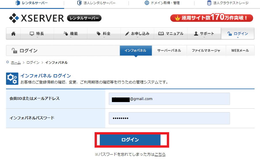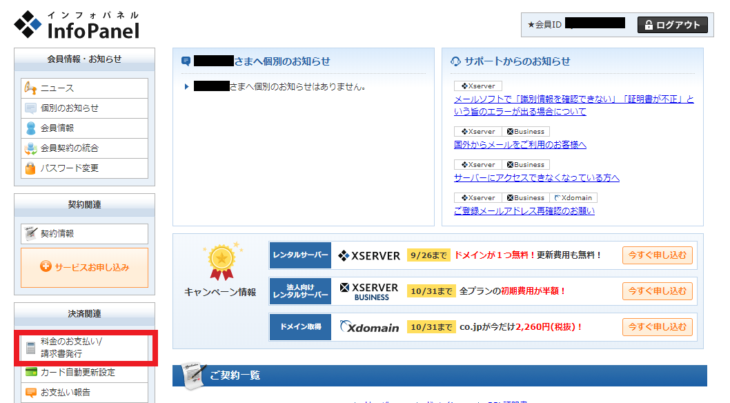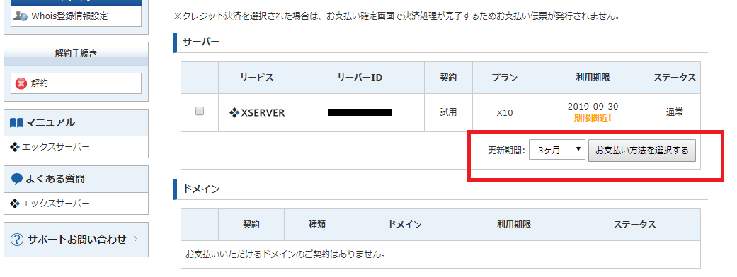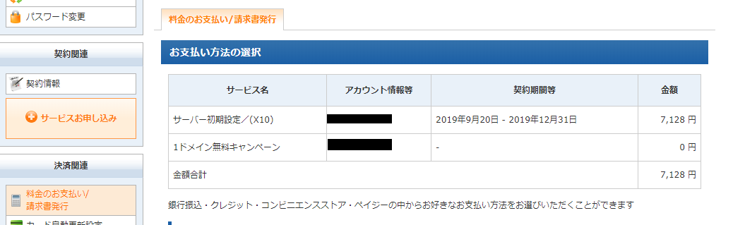 次に作成したアカウントを使用して、実際にエックスサーバの料金を払う手順を説明します。