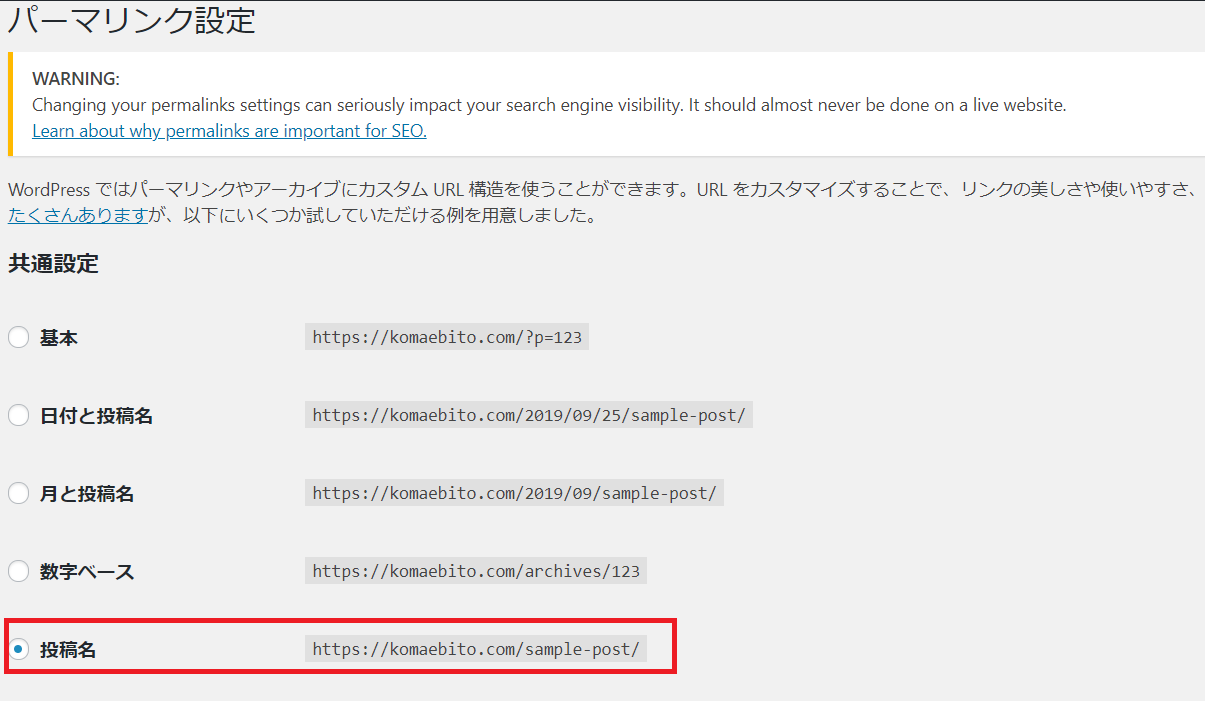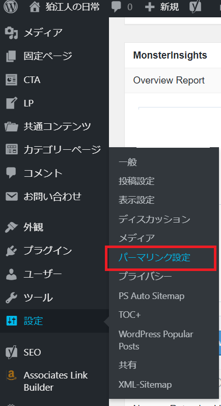 次はパーマリンクを設定していきます。パーマリンクというのは、記事のURLのことです。