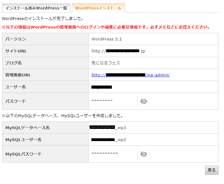 今回の作業で、サーバーにWordPressをインストールすることが完了しました。