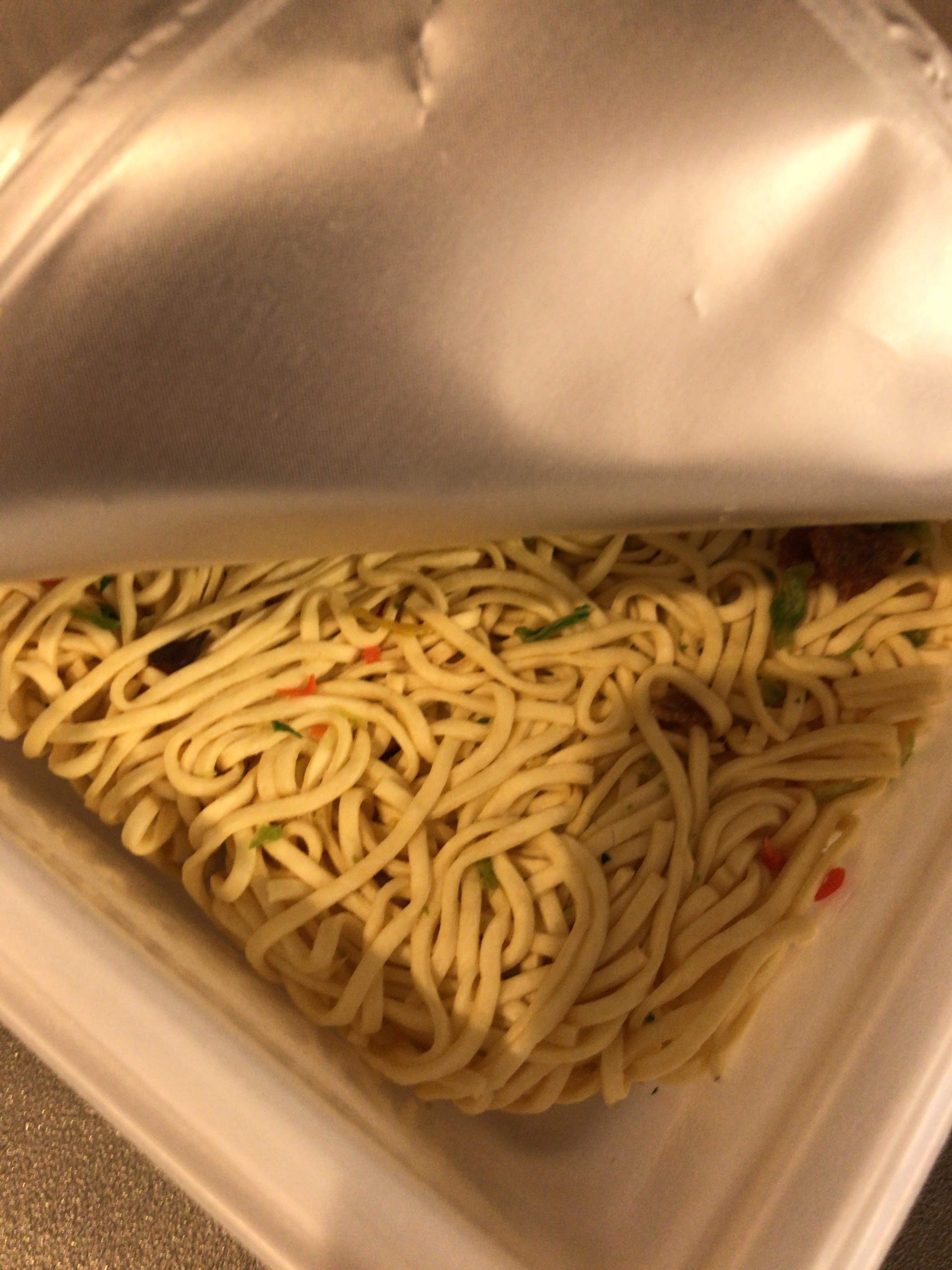 麺は見た目の通り、カップ麺の中ではかなりの極太麺です。見た目からするとラーメン二郎ぽい麺の太さにも見えなくもないです。かなりコシがあり弾力性のある麺です。焼きそばの太麺というと水っぽさをやや想像する人もいるかもしれませんが、こちらはそこまで水っぽくなく、水を吸いすぎている印象もありません。