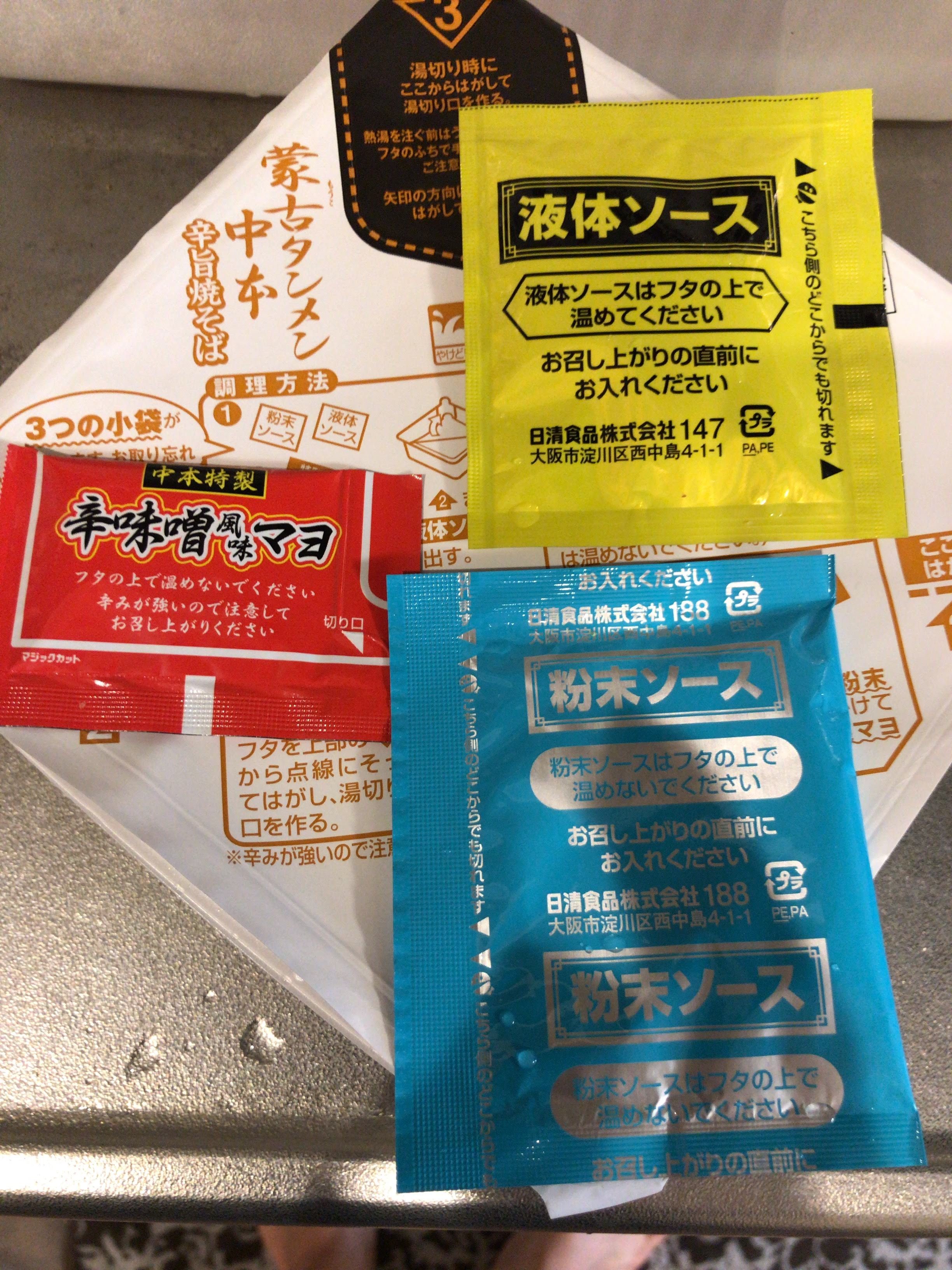 「液体ソース」「辛味噌風味マヨ」「粉末スープ」という組み合わせでしたが、今回の優勝は「粉末スープ」でした。基本的にカップ麺の焼きそばは、「液体ソース」がベースで味が決まりますが、この粉末ソースは中本焼きそばではじめてみました。正直めちゃめちゃ辛いです。