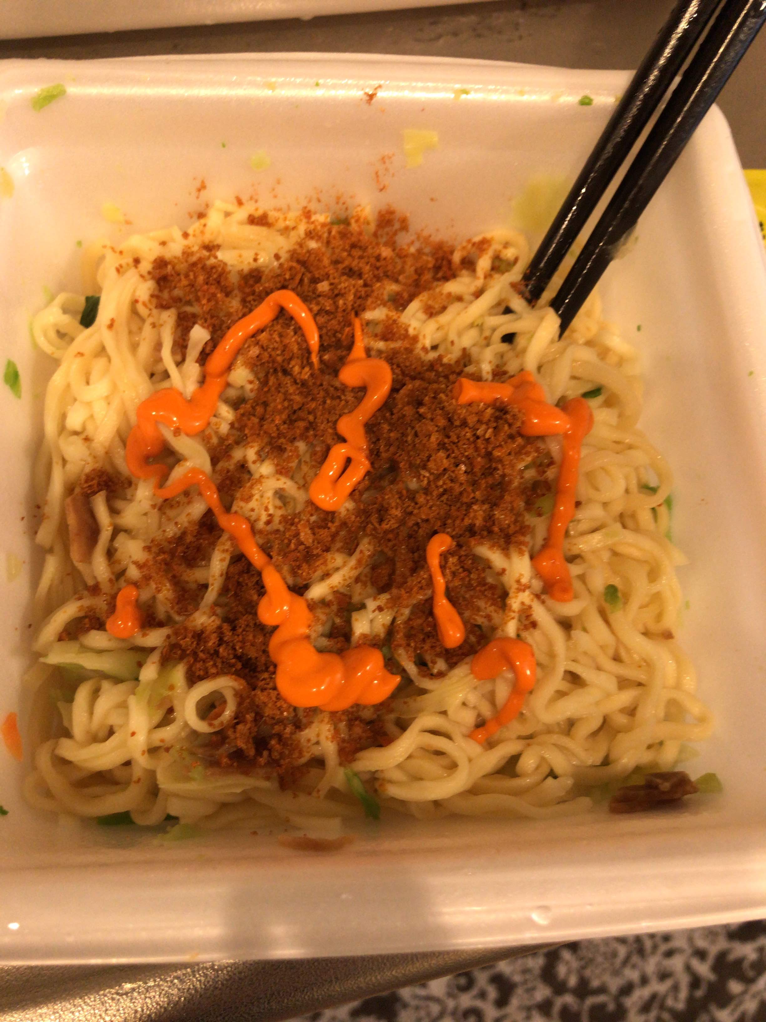 液体スープだけだと焼きそばに残った水分と混じってしまいやや辛さが薄まりますが、粉末ソースは全くうすまらなかったことがオリジナル性を出せたポイントなのかなと思います。