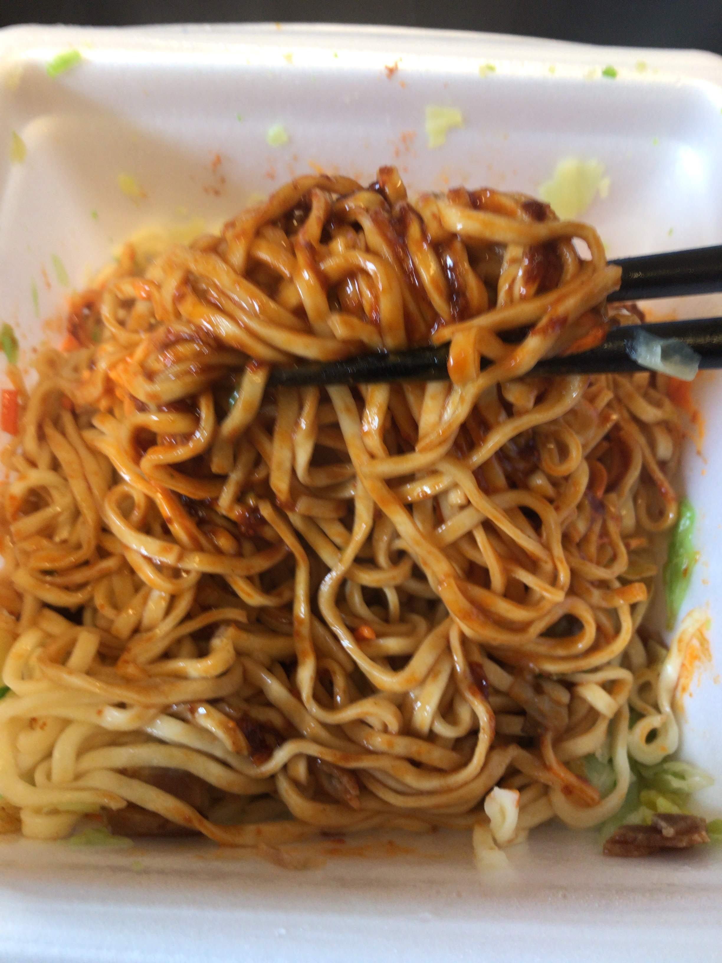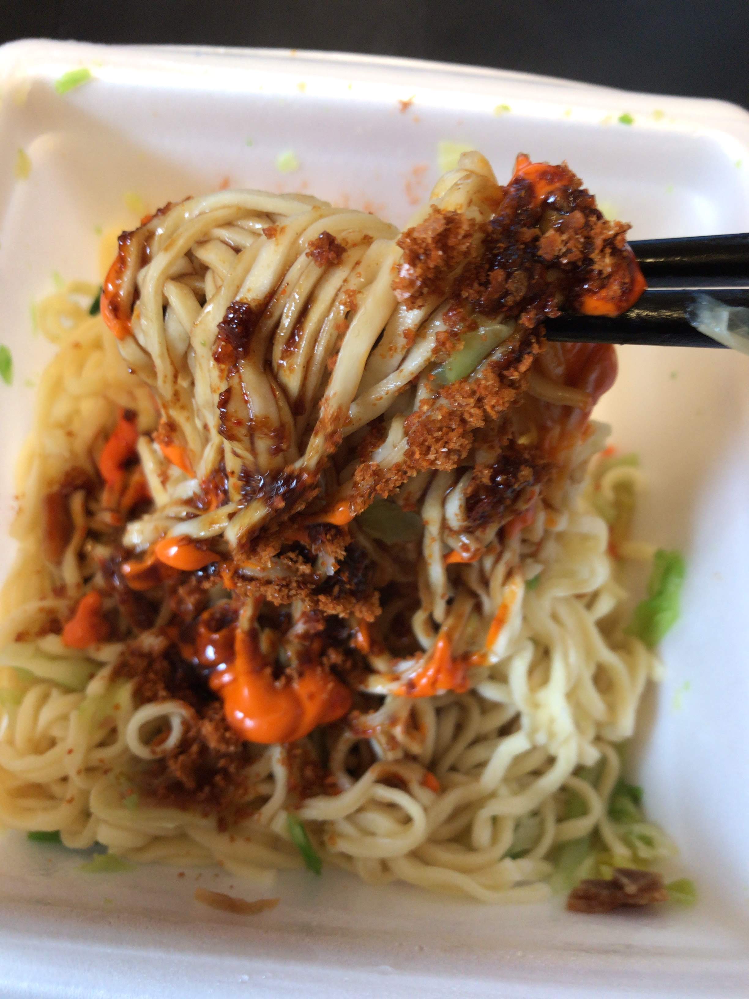 麺があまりに多すぎるので、どうしても具材はおまけ程度というイメージは否めないですが、しっかりタレに絡み合わせる際に下に沈んでしまった具材を引き上げて、混ぜ合わせて食べると、具材の旨味も合わさって、味の変化も楽しめます。