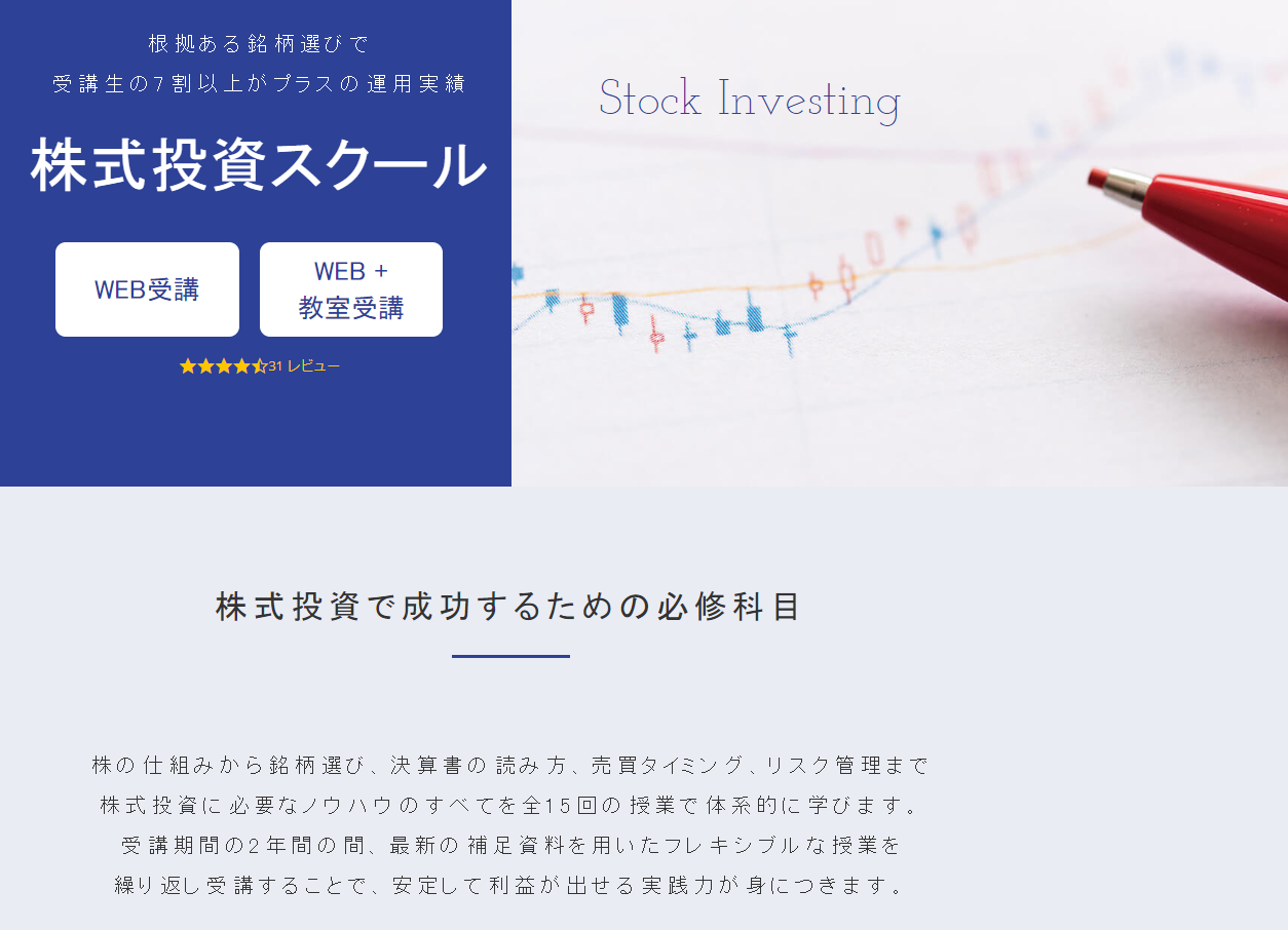 基礎から学べるため、今までなんとなく感覚で投資をしていたという人にとってはお勧めのスクールです。ぜひいま一度自分の知識がどこまであるのかを確認するうえでも一度受講してみることをお勧めいたします。知らないことが多くびっくりすると思います。