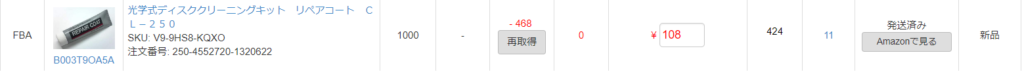| 商品:光学式ディスククリーニングキット リペアコート CL-250 仕入価格:108円 販売価格:1000円 利益:424円 |