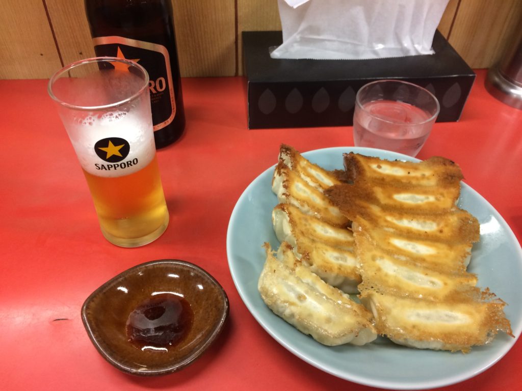 ビールも一緒に映っちゃっていますが、餃子の代表格「焼」です。調味料は醤油・酢・ラー油を混ぜていただきます。これぞシンプルイズベスト!
