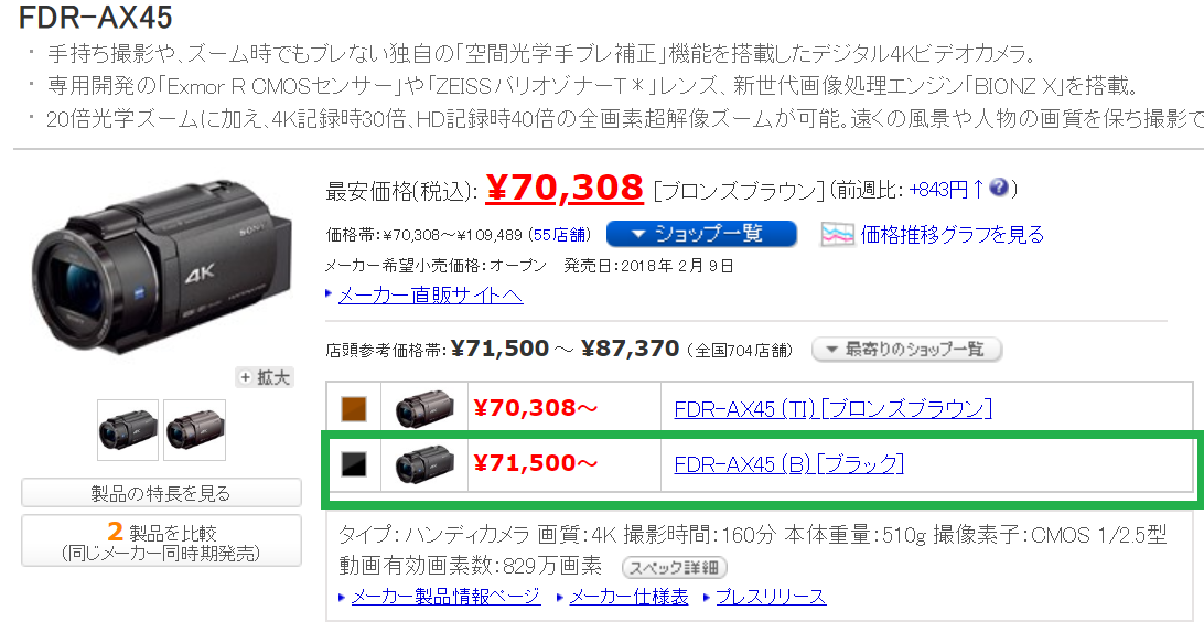 今回購入しようとしていたのは、SONYの「FDR-AX45」です。