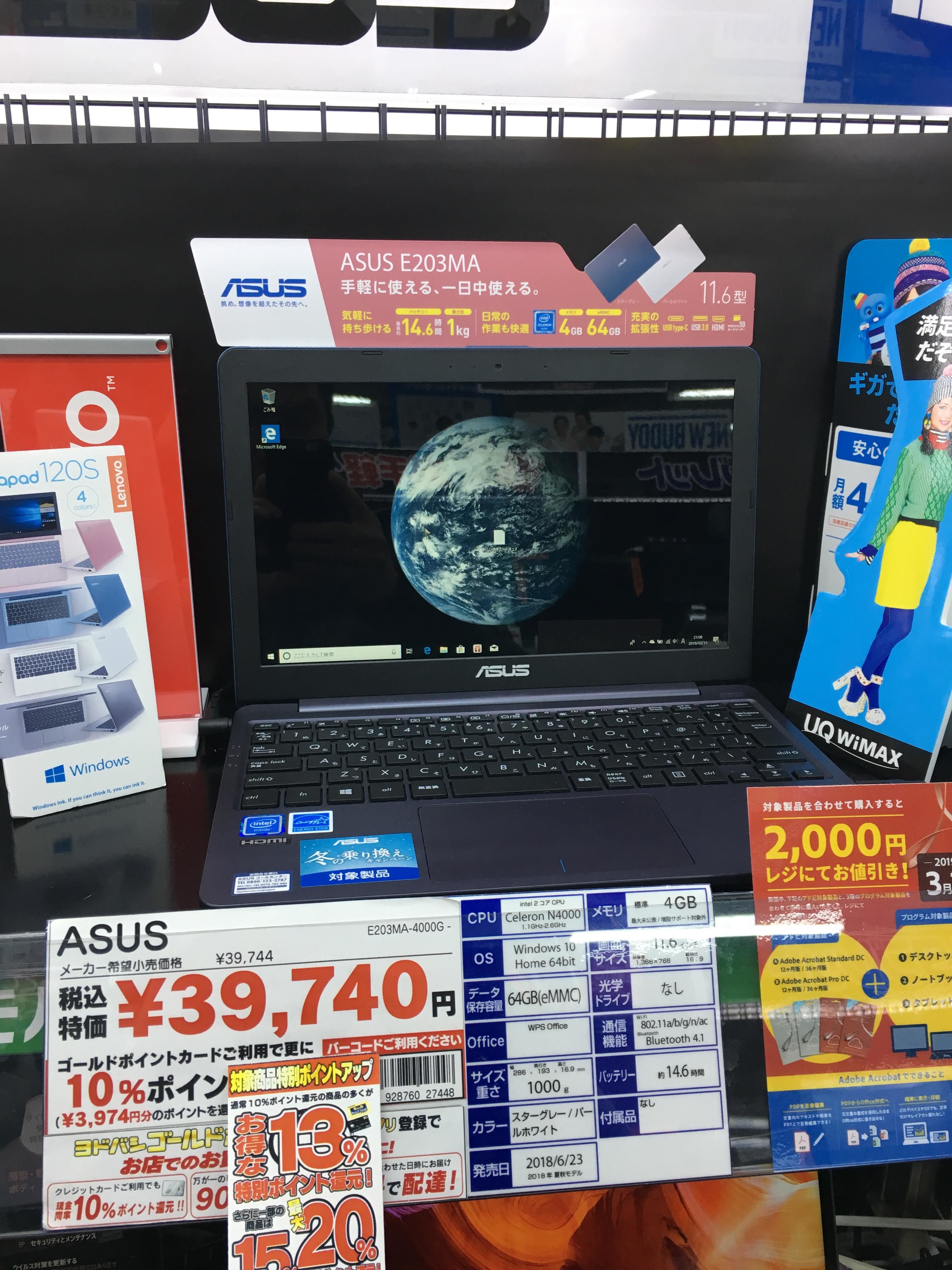 そして今回は超軽量ノートパソコンASUSの「E203MA」を購入しにヨドバシカメラに行きました。