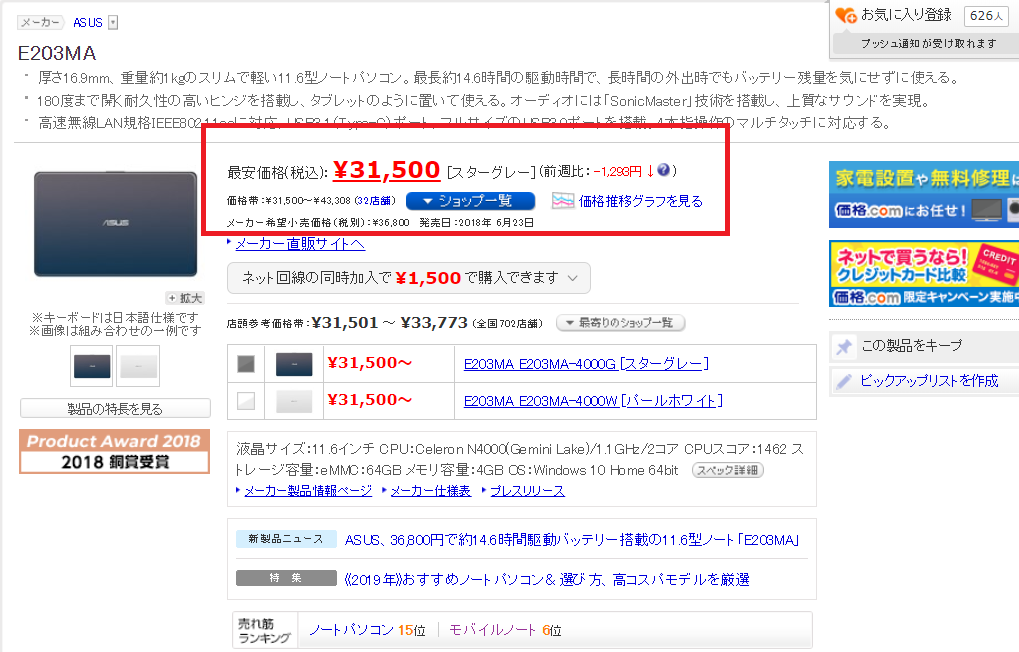 まずは、価格.comをチェック