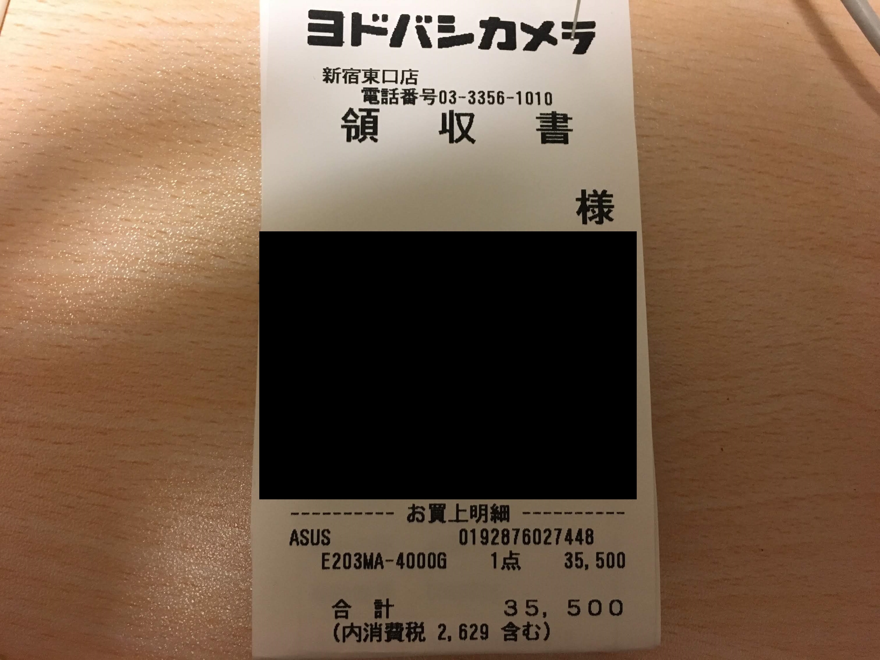 今回購入した店舗:ヨドバシカメラ新宿東口