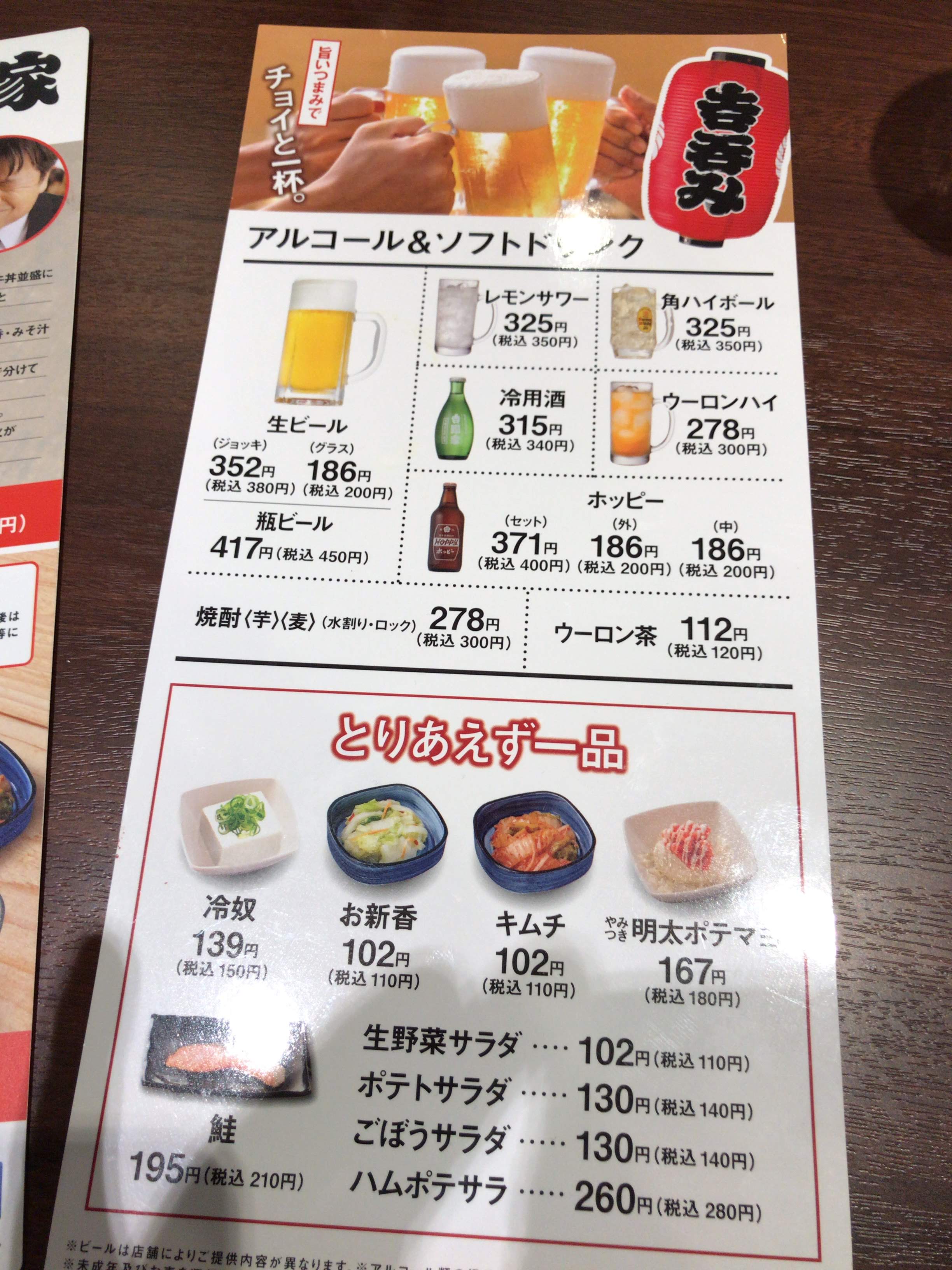 今はどこの牛丼チェーン店でもお酒が飲めますが、「ちょい飲み」とせずにあえて「吉呑み」という名前ににしているところがさすがです。