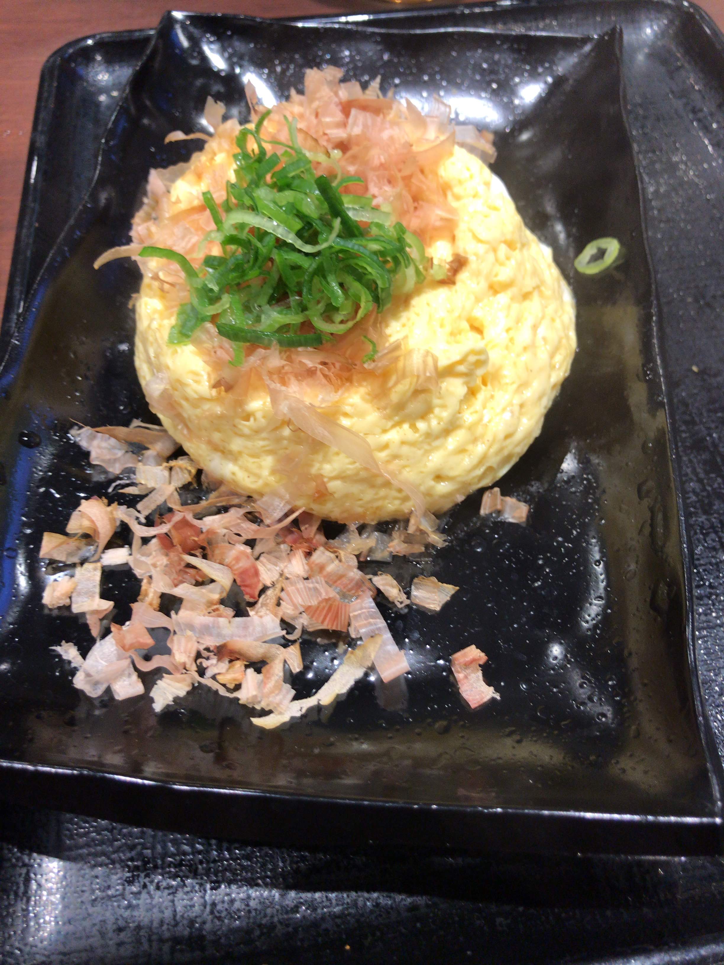やや濃い目のだしを使用してフワフワな食感に仕上げているため、だし巻きよりも柔らかいです。出来立てはかなり熱々なので、少しずつ分けて食べていく感じですが、だしと玉子の相性が良くめちゃめちゃお酒が進みます。