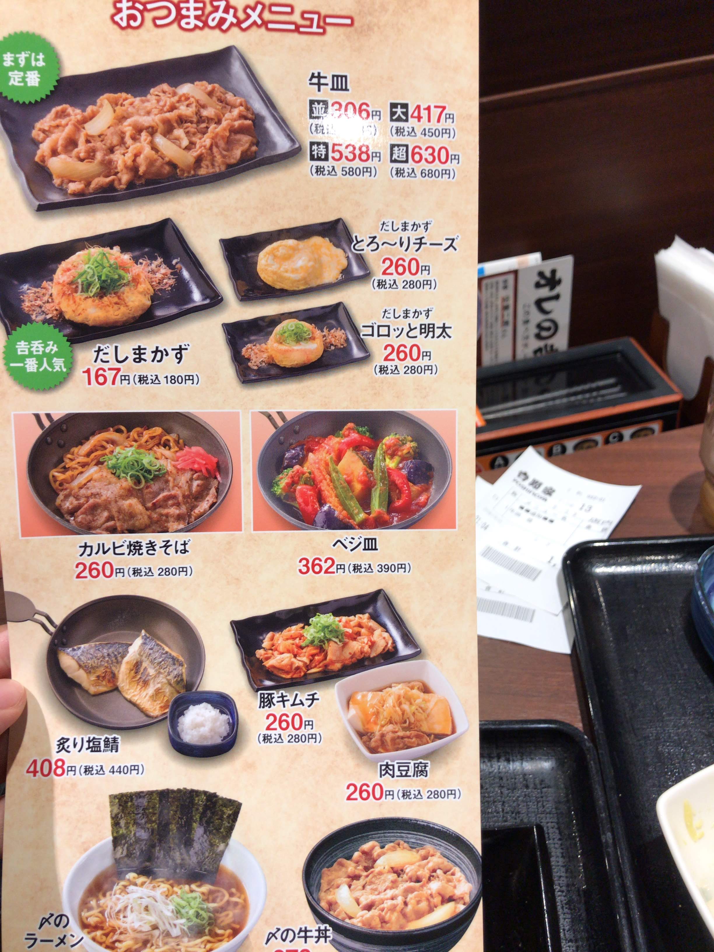 大手牛丼チェーン店吉野家の「吉呑み」に行ってきました。